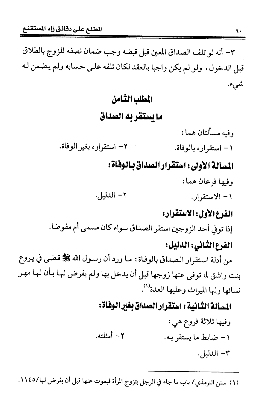(¬1) سنن الترمذي/ باب ما جاء في الرجل يتزوج المرأة فيموت عنها قبل أن يفرض لها/1145.