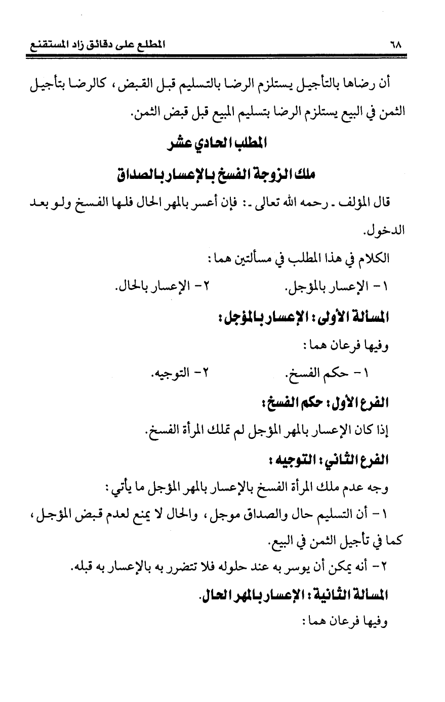 المطلب الحادي عشر ملك الزوجة الفسخ بالإعسار بالصداق