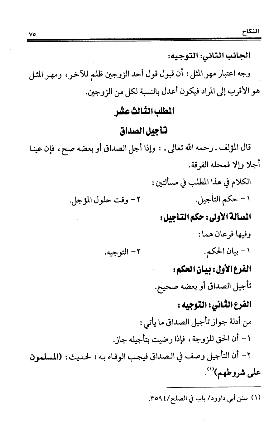 2 - أن التأجيل وصف في الصداق فيجب الوفاء به؛ لحديث: (المسلمون على شروطهم) (¬1).