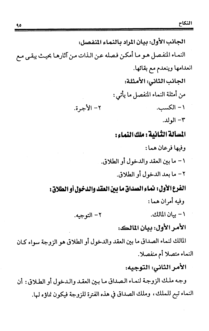 النماء المنفصل هو ما أمكن فصله عن الذات من آثارها بحيث يبقى مع انعدامها وينعدم مع بقائها.