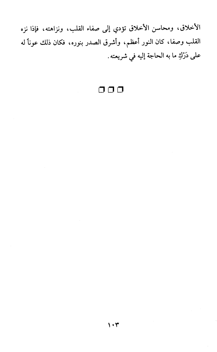الأخلاق، ومحاسن الأخلاق تؤدي إلى صفاء القلب، ونزاهته، فإذا نزه القلب وصفا، كان النور أعظم، وأشرق الصدر بنوره، فكان ذلك عوناً له على درك ما به الحاجة إليه في شريعته.