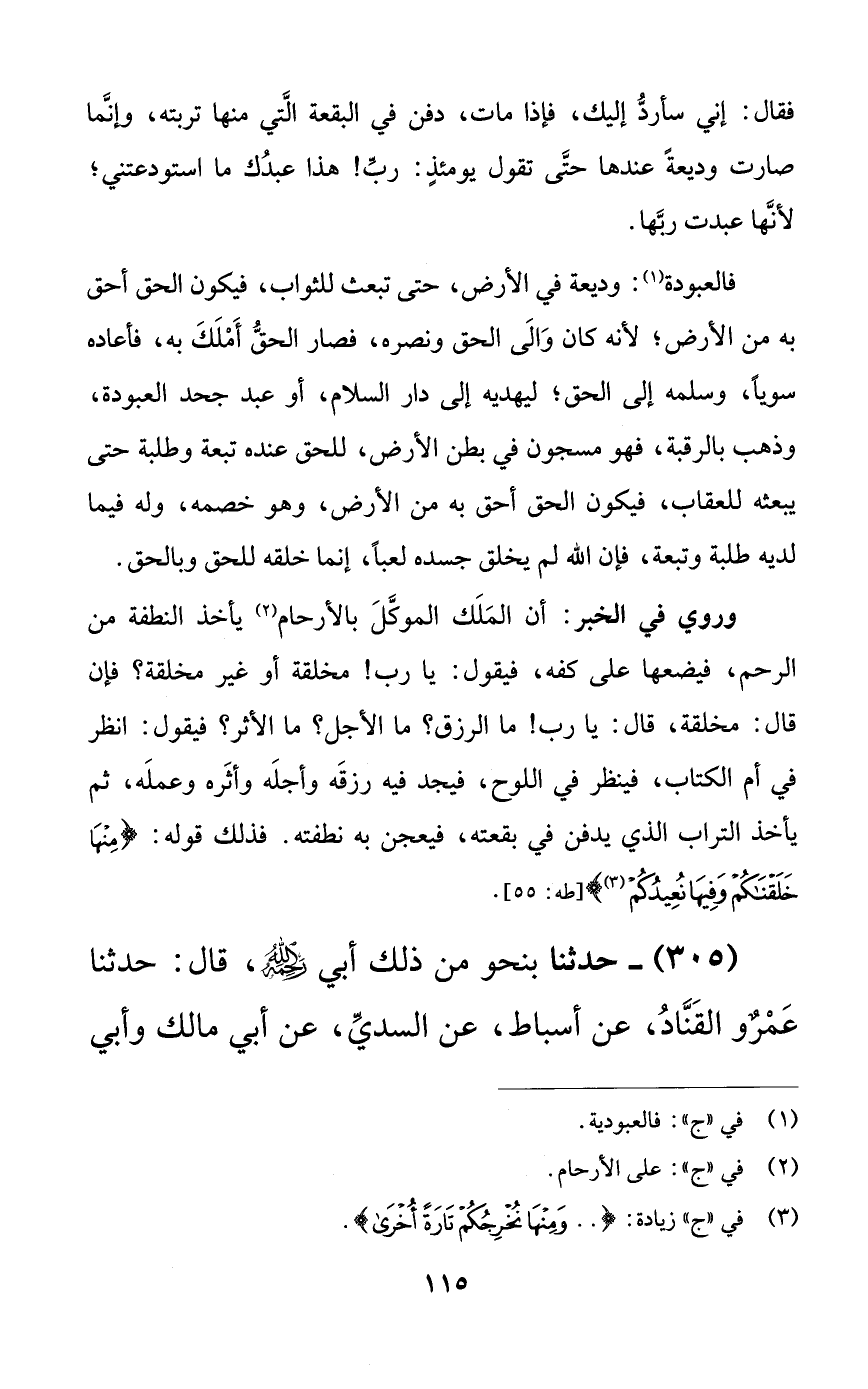 305 - حدثنا بنحو من ذلك أبي رحمه الله، قال: حدثنا عمرٌو القناد، عن أسباط، عن السدي، عن أبي مالك وأبي
