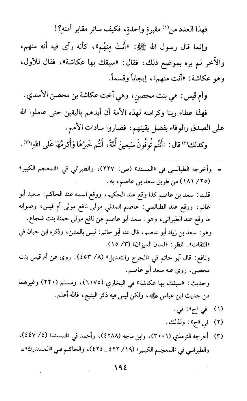 وإنما قال رسول الله صلى الله عليه وسلم: ((أنت منهم))، كأنه رأى فيه أنه منهم، والآخر لم يره بموضع ذلك، فقال: ((سبقك بها عكاشة))، فقال للأول، وهو عكاشة: ((أنت منهم))، إيجاباً وقسماً.