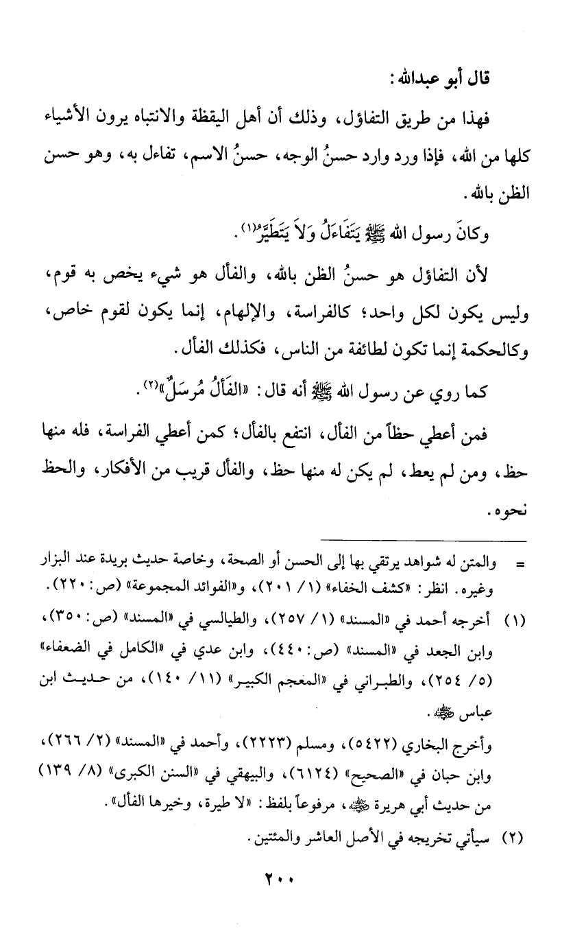 فمن أعطي حظاً من الفأل، انتفع بالفأل؛ كمن أعطي الفراسة، فله منها حظ، ومن لم يعط، لم يكن له منها حظ، والفأل قريب من الأفكار، والحظ نحوه.
