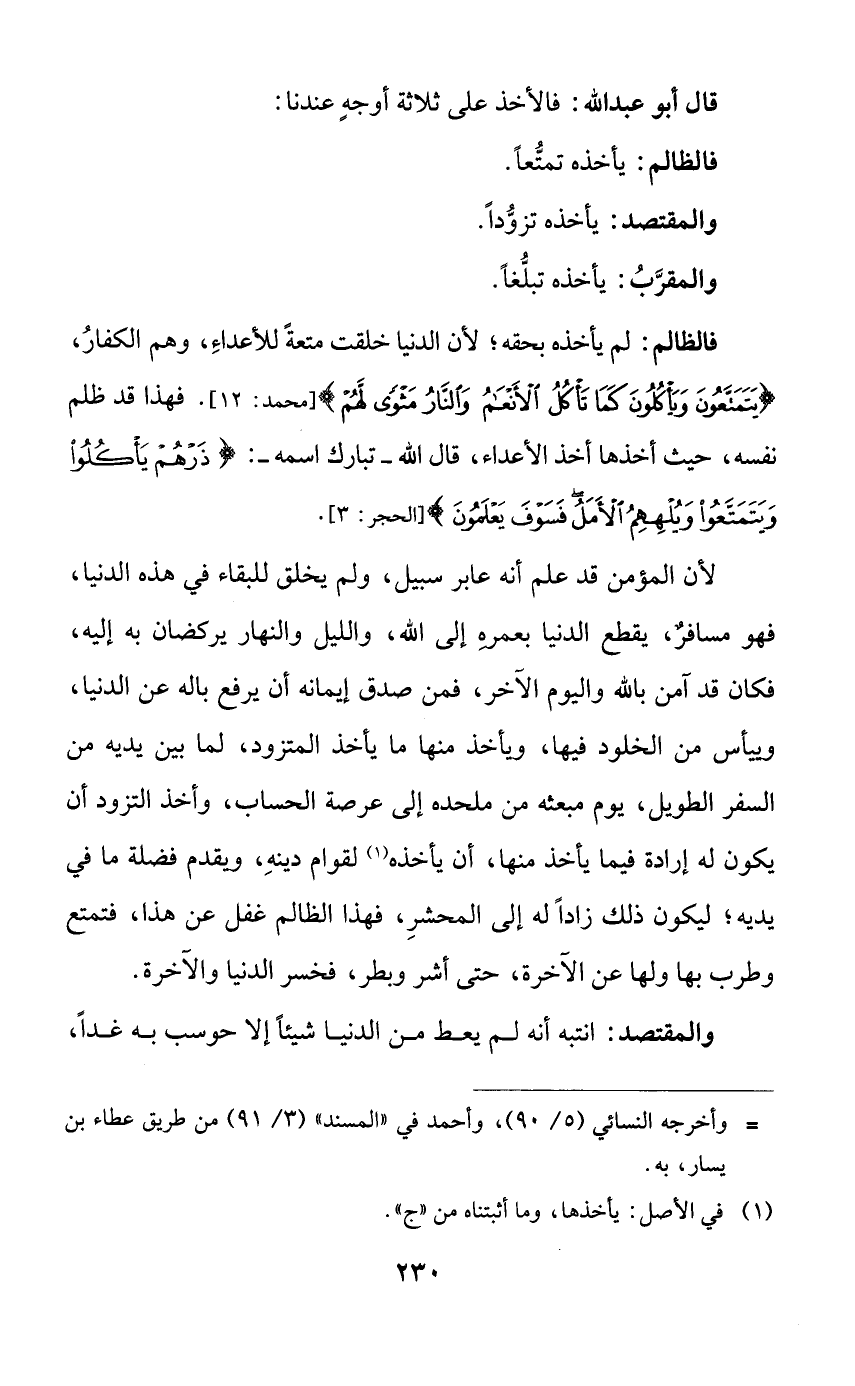 والمقتصد: انتبه أنه لم يعط من الدنيا شيئاً إلا حوسب به غداً،