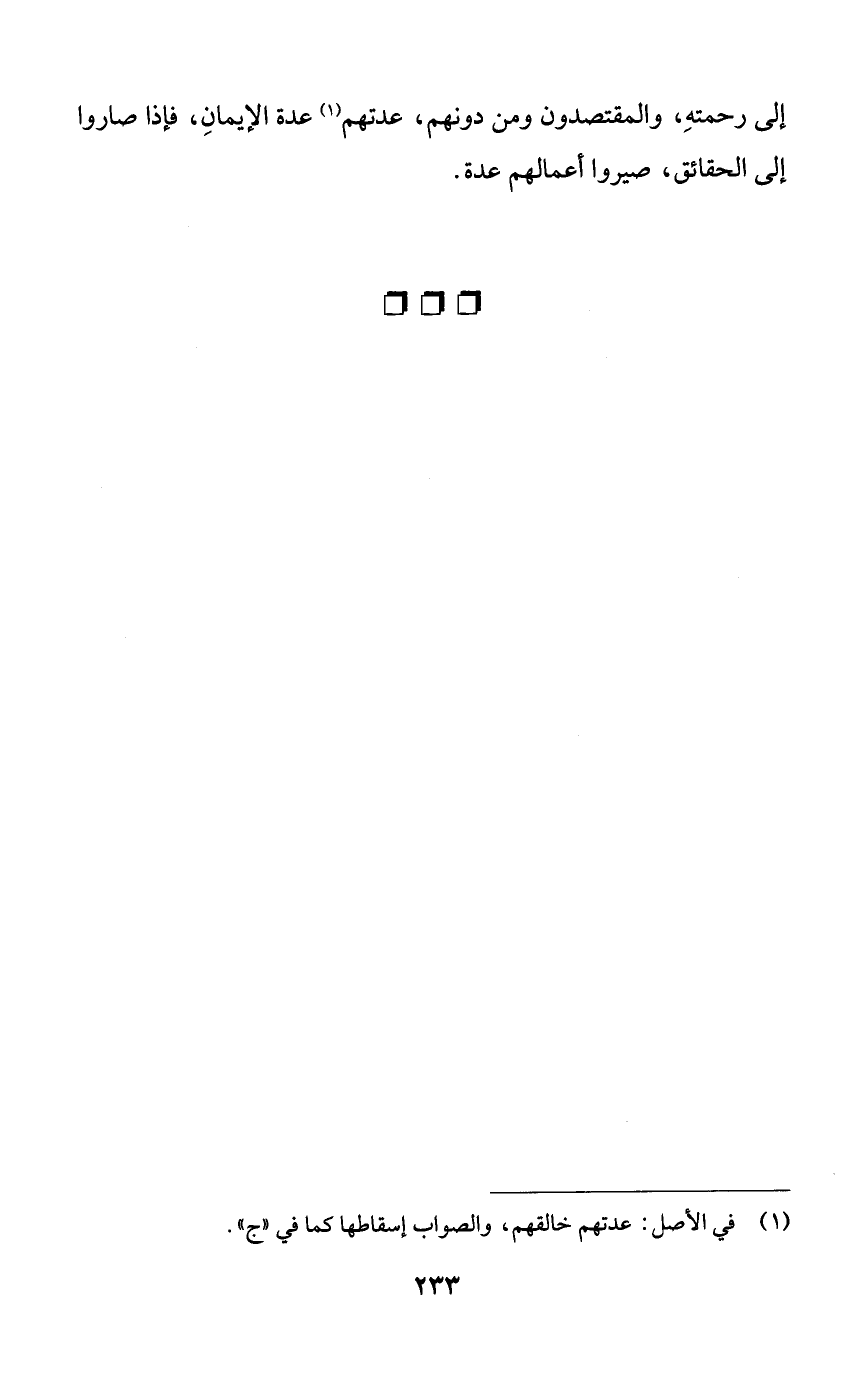 إلى رحمته، والمقتصدون ومن دونهم، عدتهم عدة الإيمان، فإن صاروا إلى الحقائق، صيروا أعمالهم عدة.