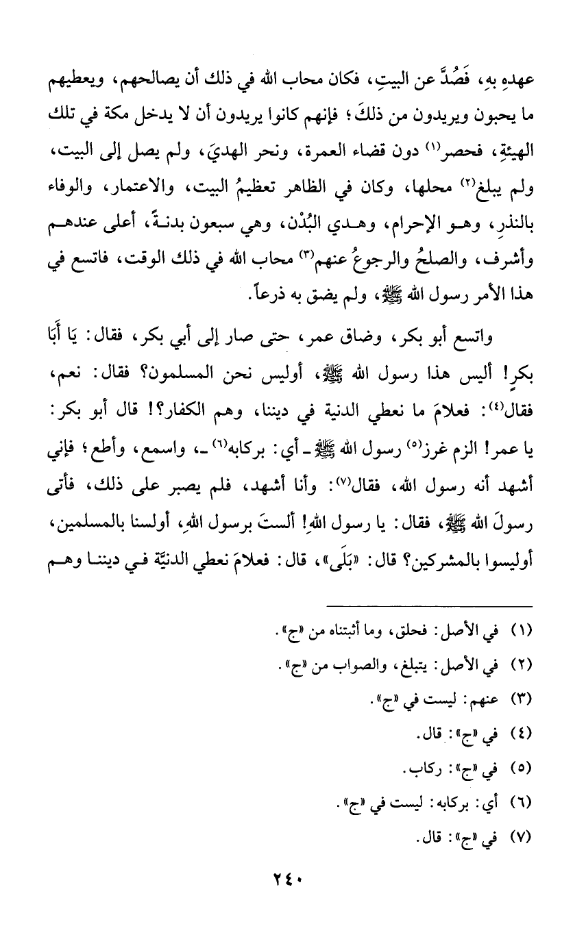 واتسع أبو بكر، وضاق عمر، حتى صار إلى أبي بكر، فقال: يا أبا بكرٍ! أليس هذا رسول الله صلى الله عليه وسلم، أوليس نحن المسلمون؟ فقال: نعم، فقال: فعلام ما نعطي الدنية في ديننا، وهم الكفار؟! قال أبو بكر: يا عمر! الزم غرز رسول الله صلى الله عليه وسلم -أي: بركابه-، واسمع، وأطع؛ فإني أشهد أنه رسول الله، فقال: وأنا أشهد، فلم يصبر على ذلك، فأتى رسول الله صلى الله عليه وسلم، فقال: يا رسول الله! ألست برسول الله، أولسنا بالمسلمين أوليسوا بالمشركين؟ قال: ((بلى))، قال: فعلام نعطي الدنية في ديننا وهم