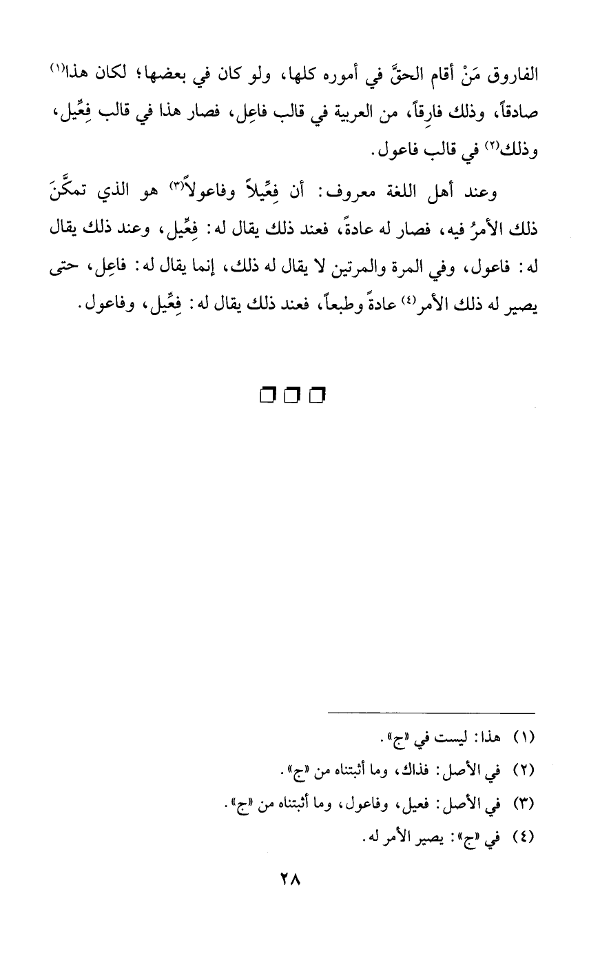 وعند أهل اللغة معروف: أن فعيلاً وفاعولاً هو الذي تمكن ذلك الأمر فيه، فصار له عادةً، فعند ذلك يقال له: فعيل، وعند ذلك يقال له: فاعول، وفي المرة والمرتين لا يقال له ذلك، إنما يقال له: فاعل، حتى يصير له ذلك الأمر عادةً وطبعاً، فعند ذلك يقال له: فعيل، وفاعول.