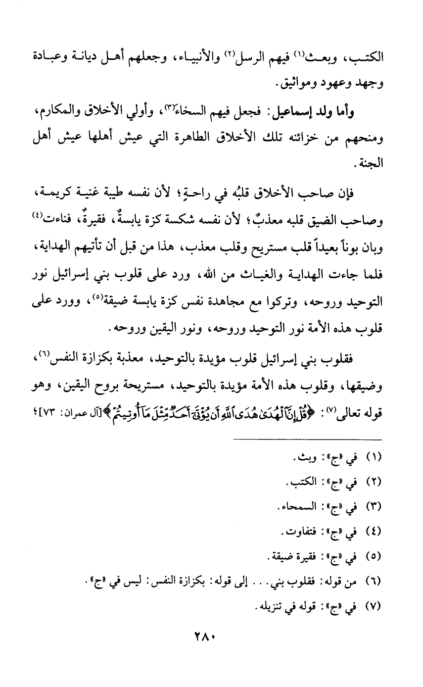 وأما ولد إسماعيل: فجعل فيهم السخاء، وأولي الأخلاق والمكارم، ومنحهم من خزائنه تلك الأخلاق الطاهرة التي عيش أهلها عيش أهل الجنة.