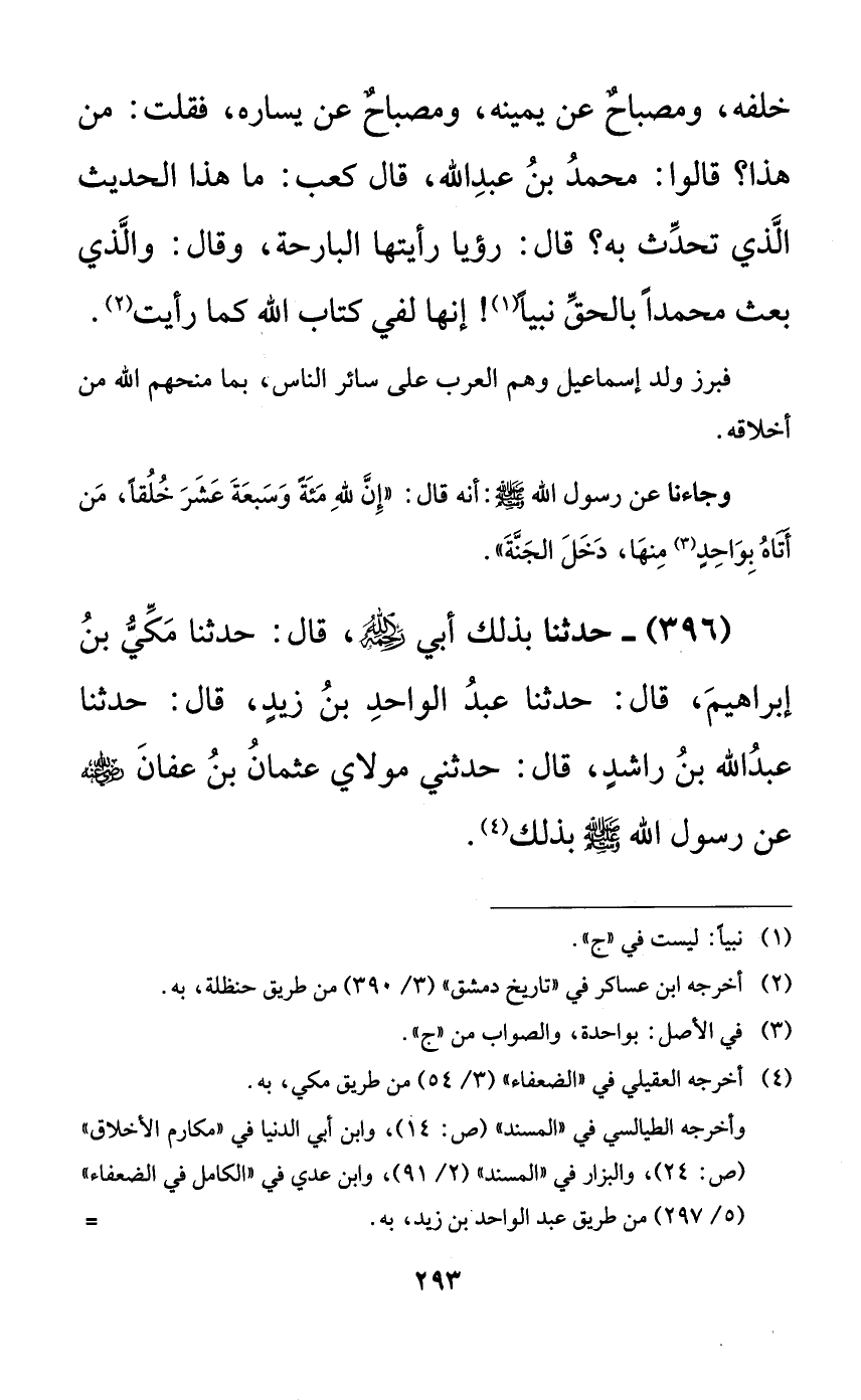 396 - حدثنا بذلك أبي رحمه الله، قال: حدثنا مكي بن إبراهيم، قال: حدثنا عبد الواحد بن زيدٍ، قال: حدثنا عبد الله بن راشد، قال: حدثني مولاي عثمان بن عفان رضي الله عنه عن رسول الله صلى الله عليه وسلم بذلك.