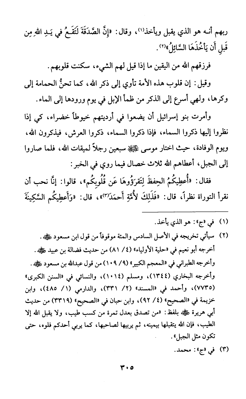 فقال: ((أعطيكم الحفظ لتقرؤوها عن قلوبكم))، قالوا: إنا نحب أن نقرأ التوراة نظراً، قال: ((فذلك لأمة أحمد))، قال: ((وأعطيكم السكينة