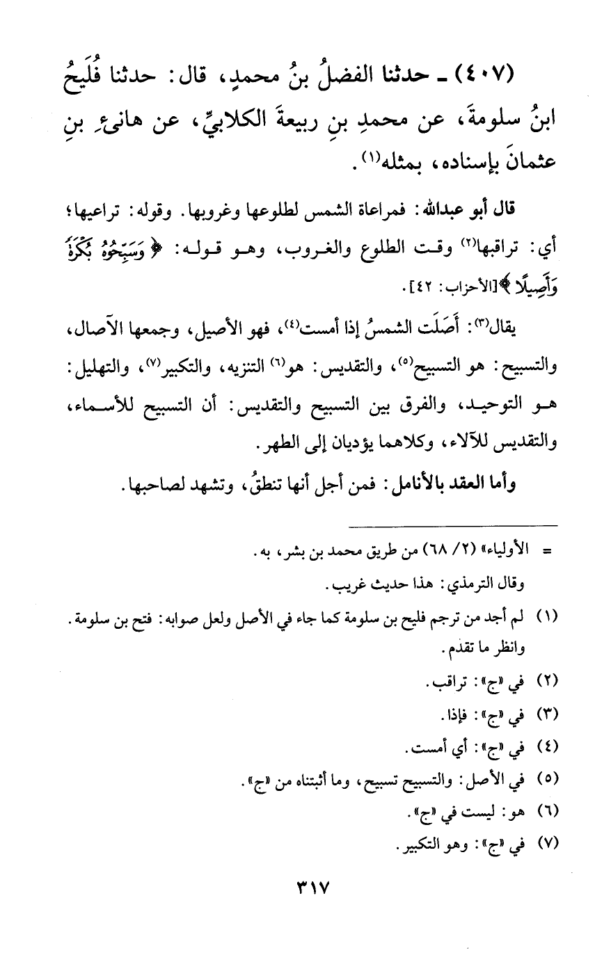 407 - حدثنا الفضل بن محمدٍ، قال: حدثنا فليح ابن سلومة، عن محمد بن ربيعة الكلابي، عن هانئ بن عثمان بإسناده، بمثله.
