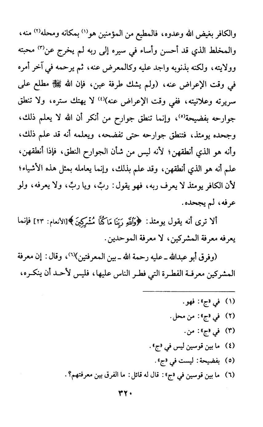 ألا ترى أنه يقول يومئذ: {والله ربنا ما كنا مشركين} فإنما يعرفه معرفة المشركين، لا معرفة الموحدين.