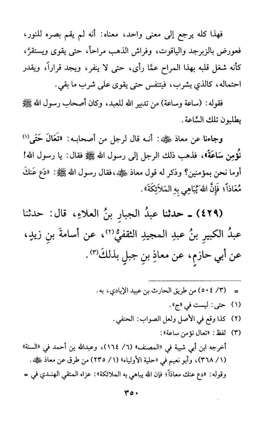 429 - حدثنا عبد الجبار بن العلاء، قال: حدثنا عبد الكبير بن عبد المجيد الثقفي، عن أسامة بن زيدٍ، عن أبي حازمٍ، عن معاذٍ بن جبلٍ بذلك.