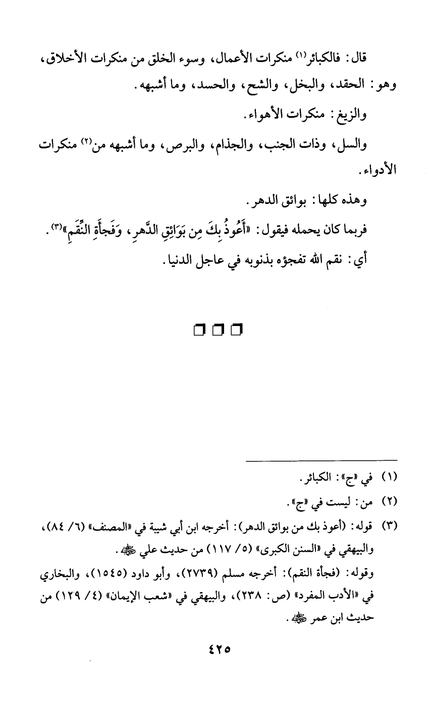 قال: فالكبائر منكرات الأعمال، وسوء الخلق من منكرات الأخلاق، وهو: الحقد، والبخل، والشح، والحسد، وما أشبهه.