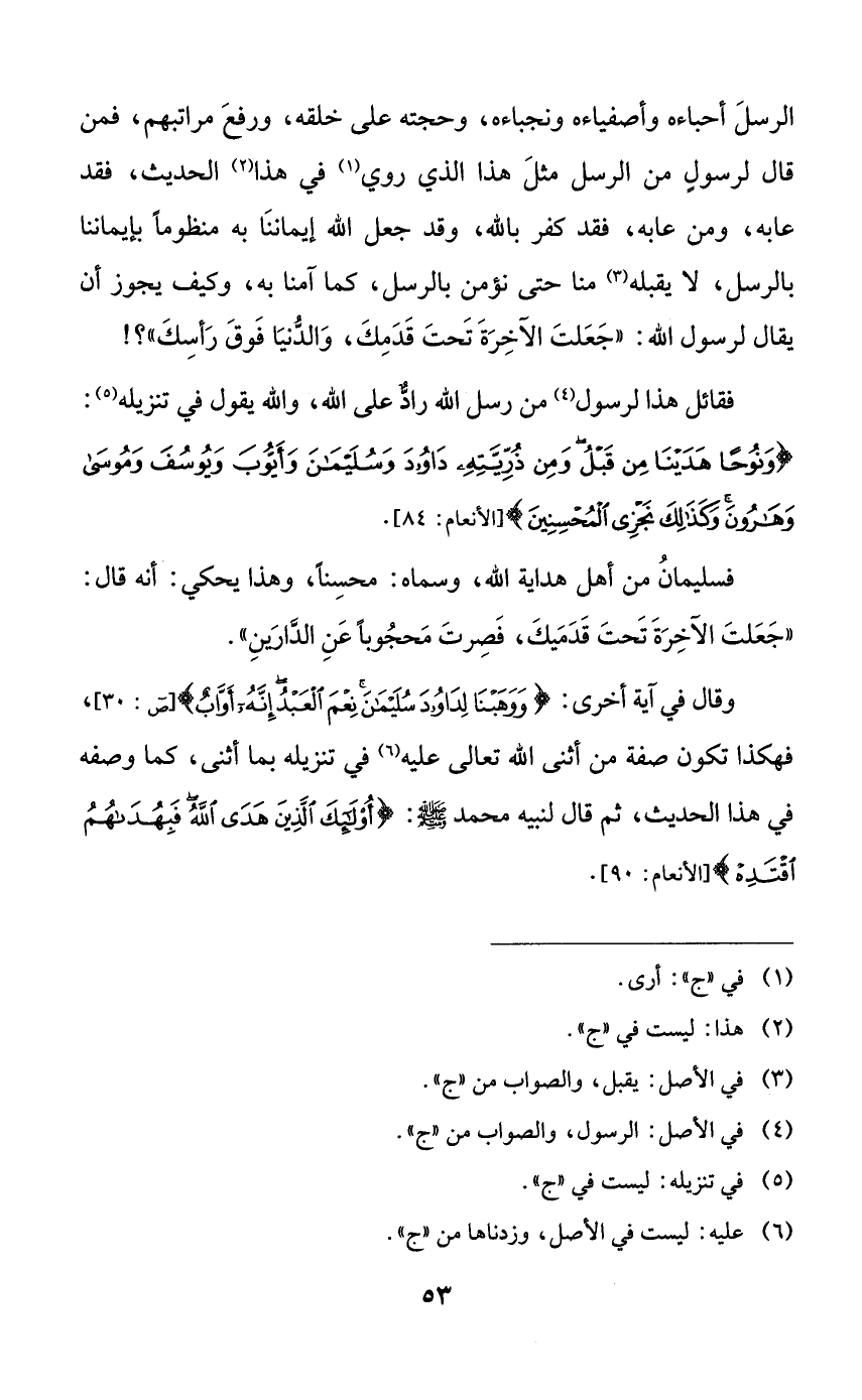 فقائل هذا لرسول من رسول الله رادٌّ على الله، والله يقول في تنزيله: {ونوحاً هدينا من قبل ومن ذريته داود وسليمان وأيوب ويوسف وموسى وهارون وكذلك نجزي المحسنين}.
