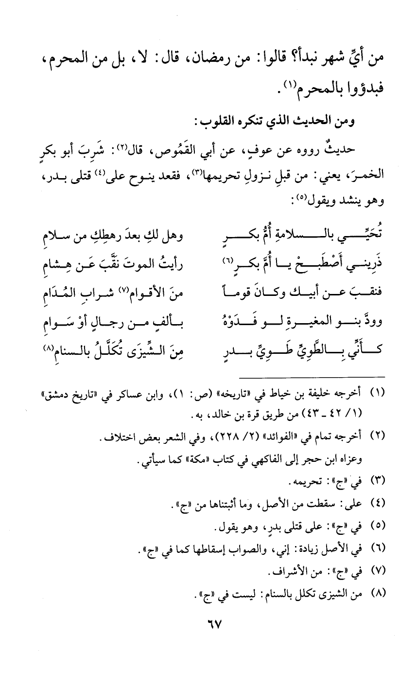 من أي شهر نبدأ؟ قالوا: من رمضان، قال: لا، بل من المحرم، فبدؤوا بالمحرم.