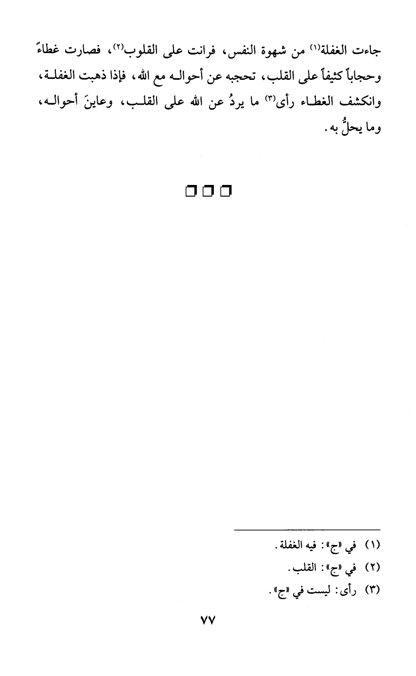 جاءت الغفلة من شهوة النفس، فرانت على القلوب، فصارت غطاءً وحجاباً كثيفاً على القلب، تحجبه عن أحواله مع الله، فإذا ذهبت الغفلة، وانكشف الغطاء رأى ما يرد عن الله على القلب، وعاين أحواله، وما يحل به.