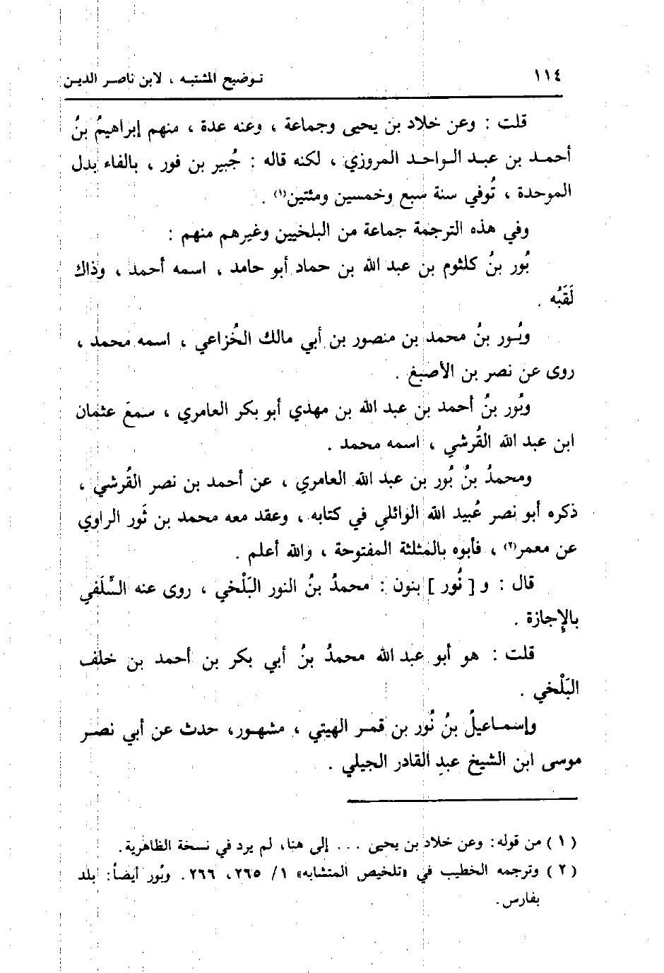 قَالَ: و [نُور] بنُون: مُحَمَّد بن النُّور الْبَلْخِي، روى عَنهُ السلَفِي بالاجازة.