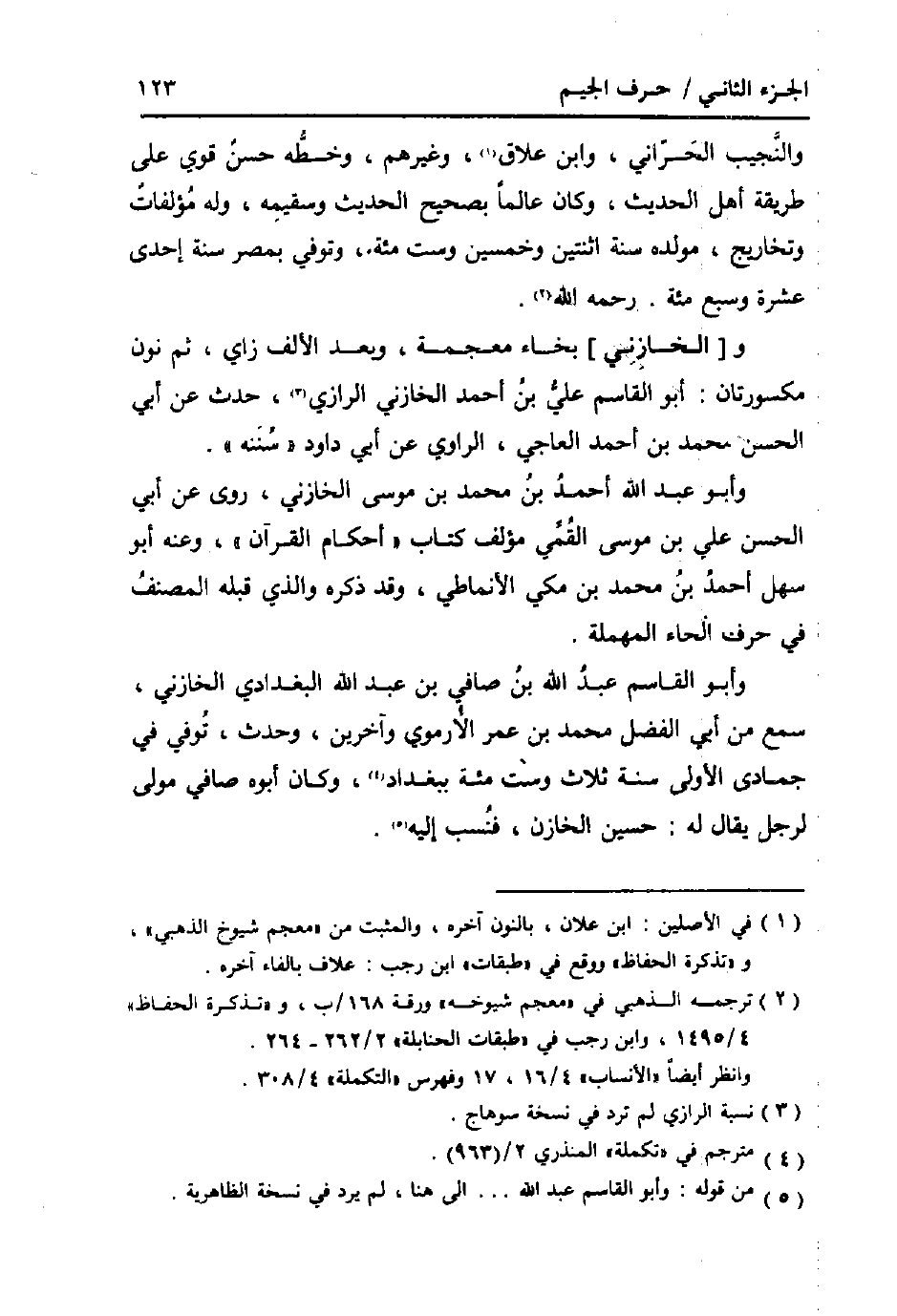 و [الخازني] بخاء مُعْجمَة، وَبعد الْألف زَاي، ثمَّ نون مكسورتان، أَبُو الْقَاسِم عَليّ بن أَحْمد الخازني الرَّازِيّ، حدث عَن أبي الْحسن مُحَمَّد بن أَحْمد العاجي، الرَّاوِي عَن أبي دَاوُد " سنَنه ".