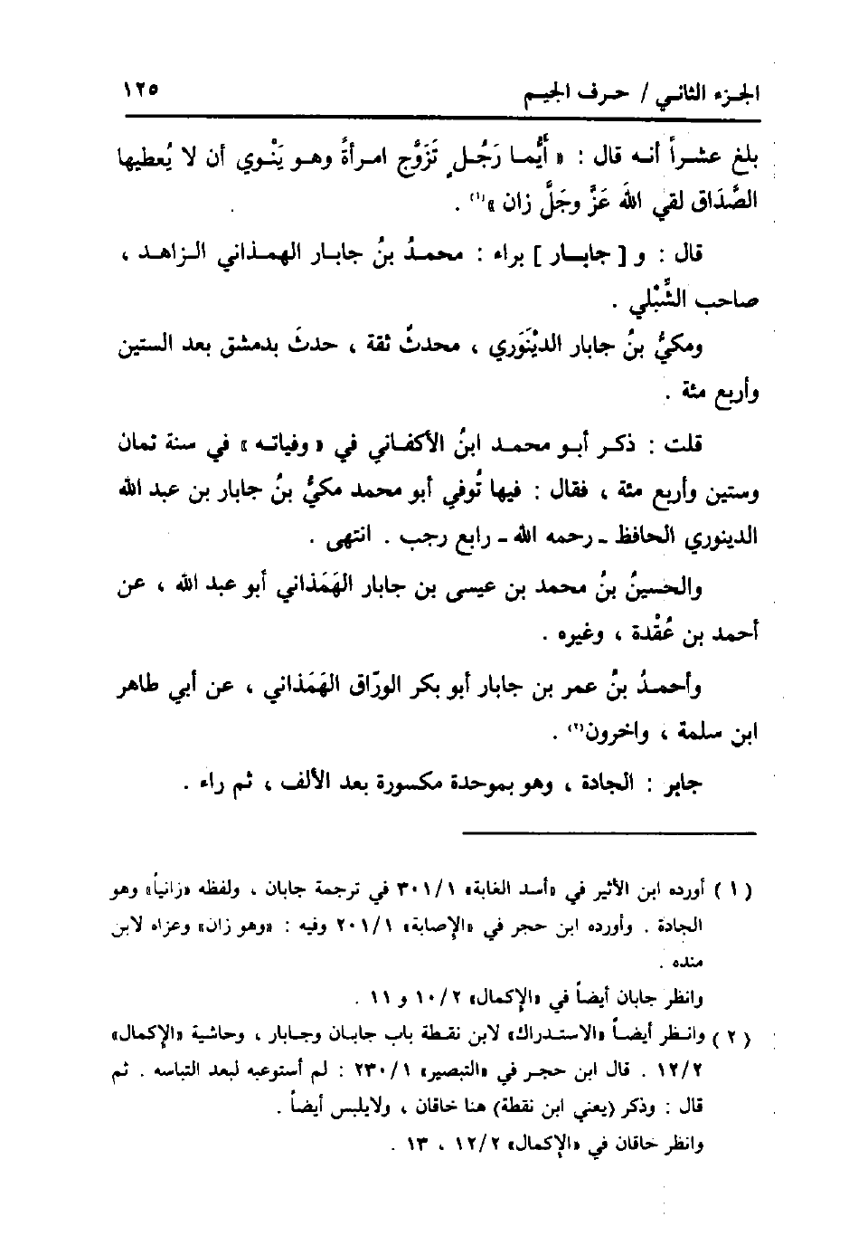 قَالَ: و [جابار] برَاء: مُحَمَّد بن جابار الهمذاني الزَّاهِد، صَاحب الشبلي. ومكي بن جابار الدينَوَرِي، مُحدث ثِقَة، حدث بِدِمَشْق بعد السِّتين وَأَرْبع مئة.
