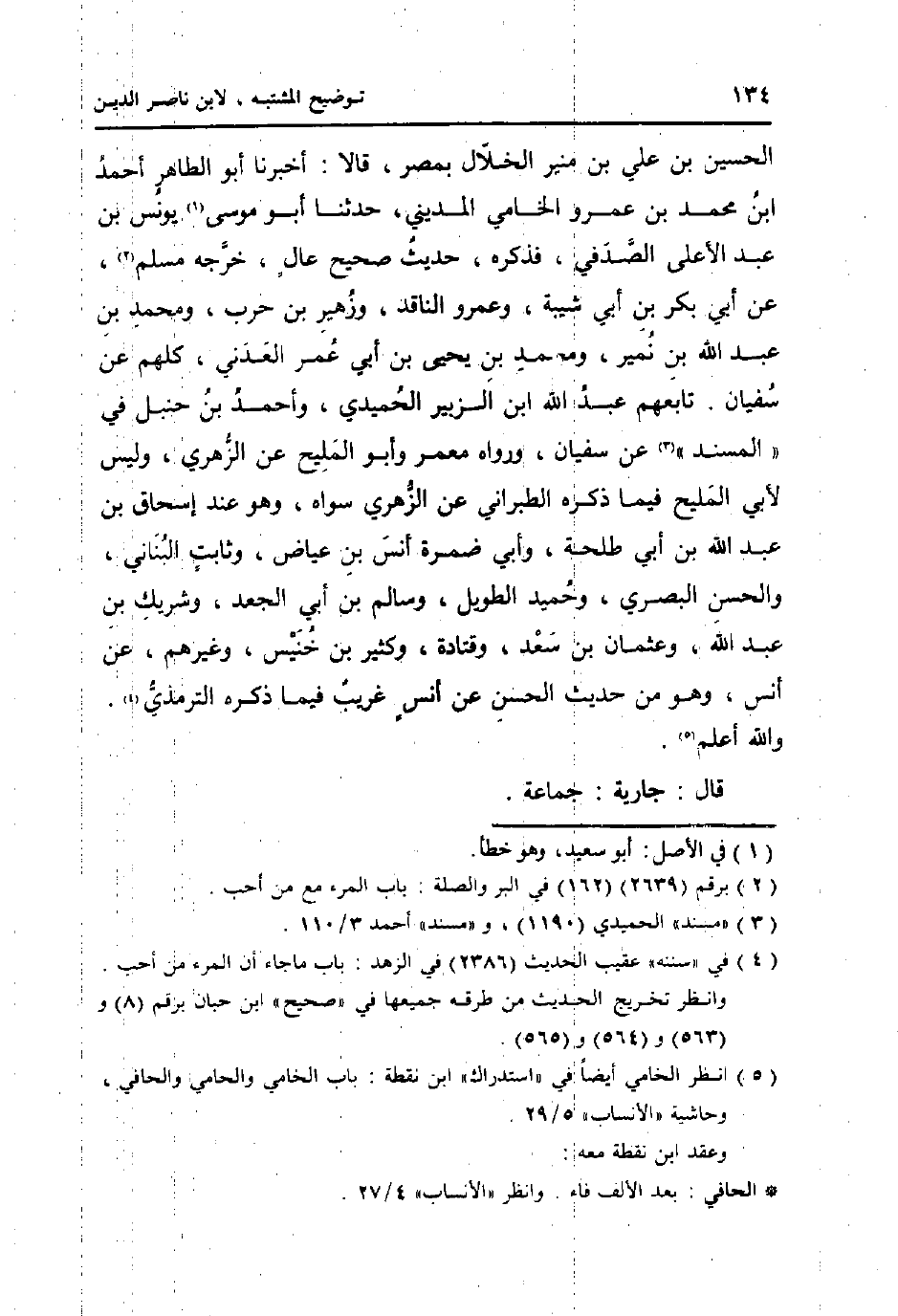 الْحُسَيْن بن عَليّ بن مُنِير الْخلال بِمصْر، قَالَا: أخبرنَا أَبُو الطَّاهِر أَحْمد ابْن مُحَمَّد بن عَمْرو الخامي الْمَدِينِيّ، حَدثنَا أَبُو مُوسَى يُونُس بن عبد الْأَعْلَى الصَّدَفِي، فَذكره، حَدِيث صَحِيح عالٍ، خرجه مُسلم، عَن أبي بكر بن أبي شيبَة، وَعَمْرو النَّاقِد، وَزُهَيْر بن حَرْب، وَمُحَمّد بن عبد الله بن نمير، وَمُحَمّد بن يحيى بن أبي عمر الْعَدنِي، كلهم عَن سُفْيَان. تَابعهمْ عبد الله ابْن الزبير الْحميدِي، وَأحمد بن حَنْبَل فِي " الْمسند " عَن سُفْيَان، وَرَوَاهُ معمر وَأَبُو الْمليح عَن الزُّهْرِيّ، وَلَيْسَ لأبي الْمليح فِيمَا ذكره الطَّبَرَانِيّ عَن الزُّهْرِيّ سواهُ، وَهُوَ عِنْد إِسْحَاق بن عبد الله بن أبي طَلْحَة، وابي ضَمرَة أنس بن عِيَاض، وثابت الْبنانِيّ، وَالْحسن الْبَصْرِيّ، وَحميد الطَّوِيل، وَسَالم بن أبي الْجَعْد، وَشريك بن عبد الله، وَعُثْمَان بن سعد، وَقَتَادَة، وَكثير بن خُنَيْس، وَغَيرهم، عَن انس، وَهُوَ من حَدِيث عَن أنس غَرِيب فِيمَا ذكره التِّرْمِذِيّ.