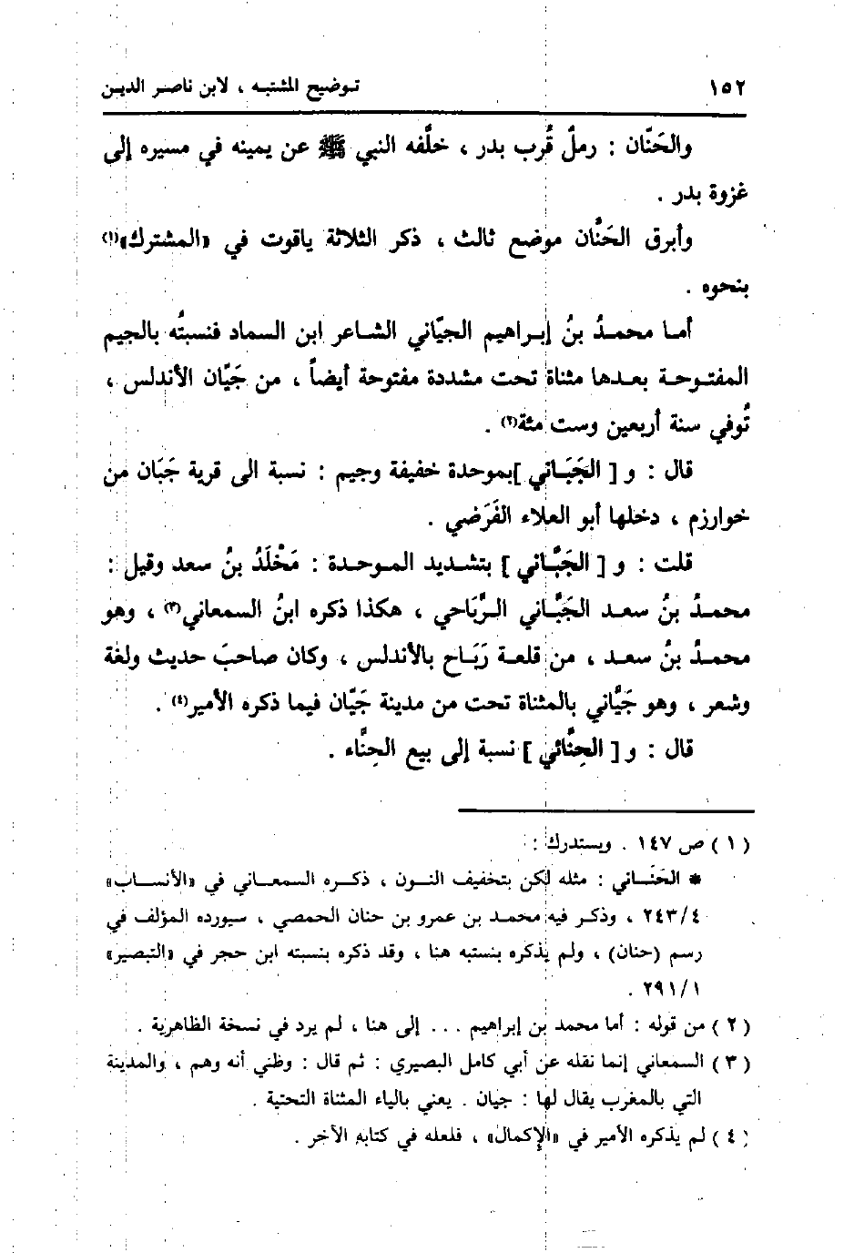 قَالَ: و [الجَبَاني] بموحدة خَفِيفَة وجيم: نِسْبَة إِلَى قَرْيَة جبان من خوارزم، دَخلهَا أَبُو الْعَلَاء الفرضي.