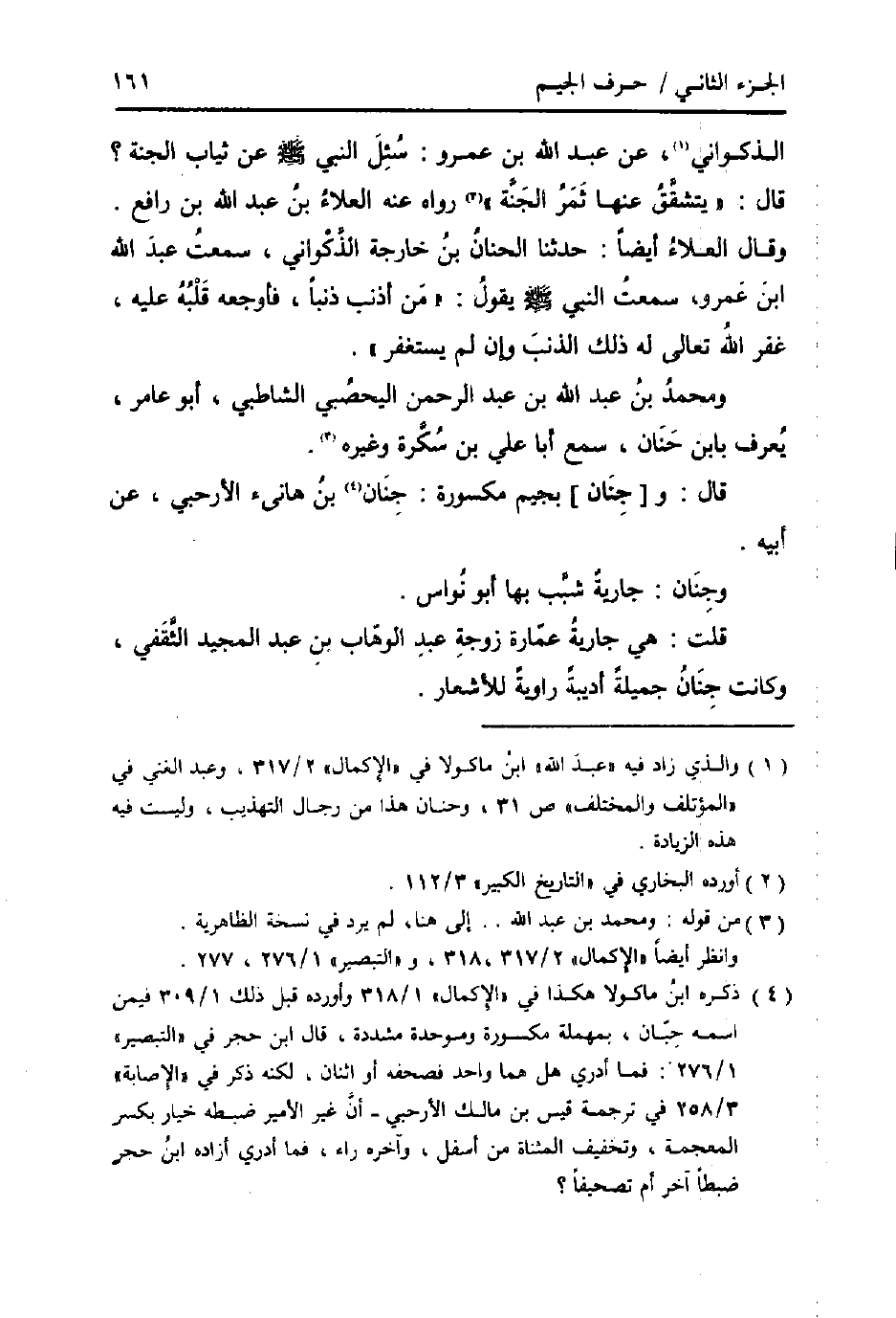 قَالَ: و [جِنَان] بجيم مَكْسُورَة: جنان بن هَانِئ الارحبي، عَن أَبِيه.