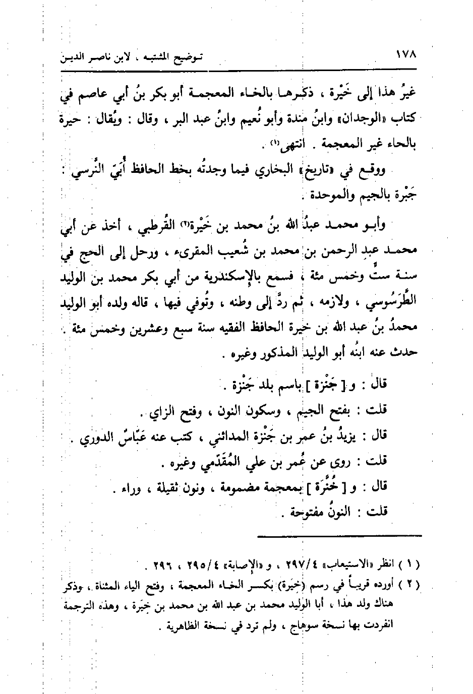 غير هَذَا إِلَى خيرة، ذكرهَا بِالْخَاءِ الْمُعْجَمَة أَبُو بكر بن أبي عَاصِم فِي كتاب " الوحدان " وَابْن مندة وَأَبُو نعيم وَابْن عبد الْبر، وَقَالَ: وَيُقَال: حيرة بِالْحَاء غير الْمُعْجَمَة. انْتهى.