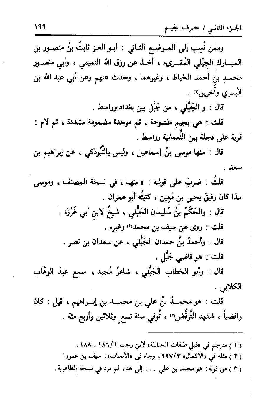 قَالَ: والجَبُّلي، من جبل بَين بَغْدَاد وواسط.