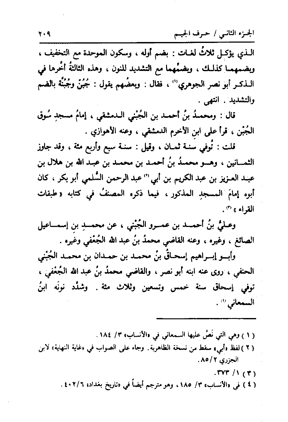 وَأَبُو إِبْرَاهِيم إِسْحَاق بن مُحَمَّد بن حمدَان بن مُحَمَّد الجبني الْحَنَفِيّ، روى عَنهُ ابْنه أَبُو نصر، وَالْقَاضِي مُحَمَّد بن عبد الله الْجعْفِيّ، توفّي إِسْحَاق سنة خمس وَتِسْعين وَثَلَاث مئة. وشدد نونه ابْن السَّمْعَانِيّ.