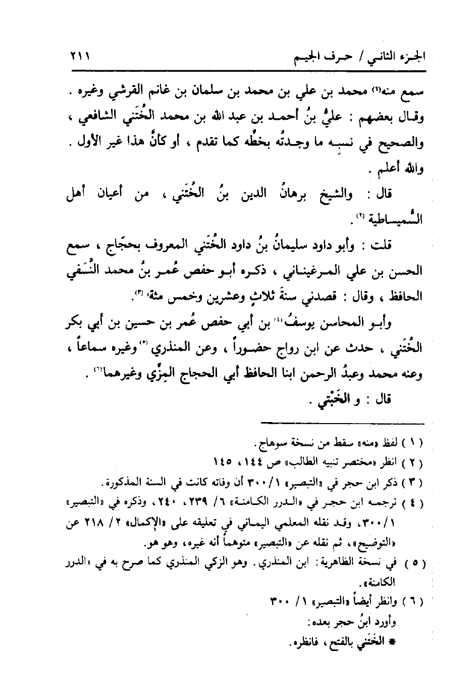 قَالَ: وَالشَّيْخ برهَان الدّين بن الختني، من أَعْيَان أهل السميساطية.