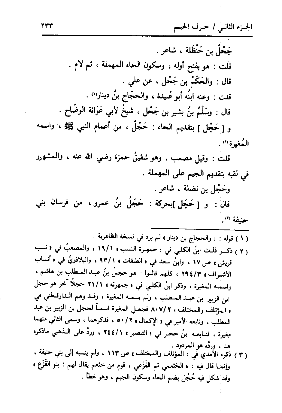 و [حَجْل] بِتَقْدِيم الْحَاء، حجل، من اعمام النَّبِي صلى الله عَلَيْهِ وَسلم، واسْمه الْمُغيرَة.