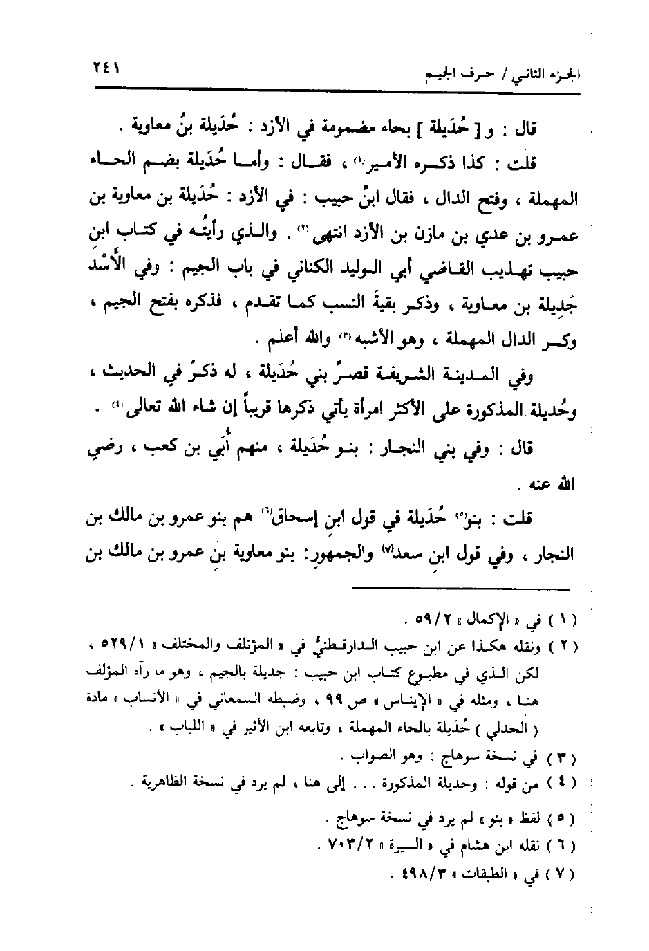 قلت: كَذَا ذكره الامير، فَقَالَ: وَأما حديلة بِضَم الْحَاء الْمُهْملَة، وَفتح الدَّال، فَقَالَ ابْن حبيب: فِي الازد: حديلة بن مُعَاوِيَة بن عَمْرو بن عدي بن مَازِن بن الازد انْتهى. وَالَّذِي رايته فِي كتاب ابْن حبيب تَهْذِيب القَاضِي أبي الْوَلِيد الْكِنَانِي فِي بَاب الْجِيم: وَفِي الْأسد جديلة بن مُعَاوِيَة، وَذكر بَقِيَّة النّسَب كَمَا تقدم، فَذكره بِفَتْح الْجِيم، وَكسر الدَّال الْمُهْملَة، وَهُوَ الاشبه وَالله اعْلَم.