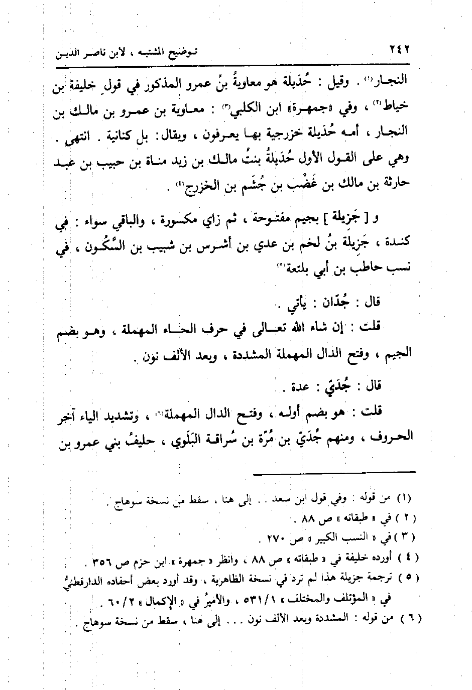 قلت: هُوَ بِضَم أَوله، وَفتح الدَّال الْمُهْملَة، وَتَشْديد الْيَاء آخر الْحُرُوف، وَمِنْهُم جدي بن مرّة بن سراقَة البلوي، حَلِيف بني عَمْرو بن