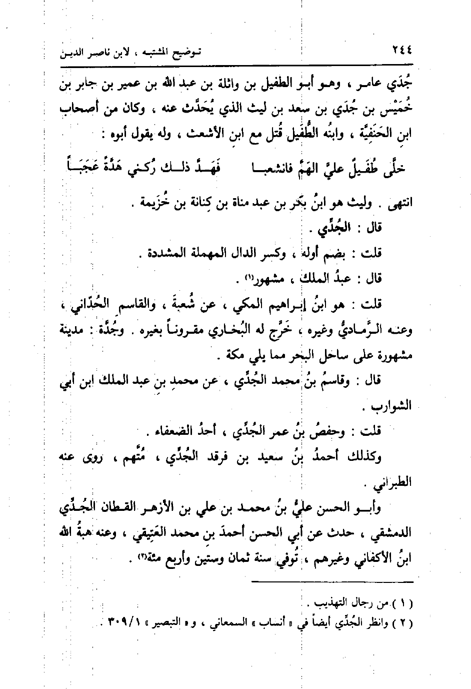 جدي عَامر، وَهُوَ أَبُو الطُّفَيْل بن وَاثِلَة بن عبد الله بن عُمَيْر بن جَابر بن خَمِيس بن جدي بن سعد بن لَيْث الَّذِي يحدث عَنهُ، وَكَانَ من أَصْحَاب ابْن الْحَنَفِيَّة، وَابْنه الطُّفَيْل قتل مَعَ ابْن الاشعث، وَله يَقُول أَبوهُ: