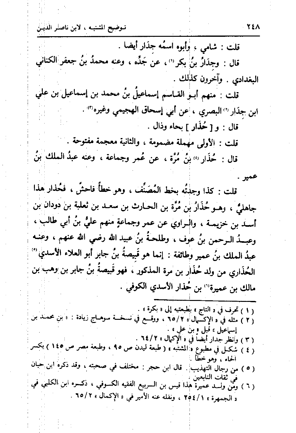 قلت: كَذَا وجدته بِخَط المُصَنّف، وَهُوَ خطأ فَاحش، فحذار هَذَا جاهلي، وَهُوَ حذار بن مرّة بن الْحَارِث بن سعد بن ثَعْلَبَة بن دودان بن أَسد بن خُزَيْمَة، والراوي عَن عمر وَجَمَاعَة مِنْهُم عَليّ بن أبي طَالب، وَعبد الرَّحْمَن بن عَوْف، وَطَلْحَة بن عبيد الله رَضِي الله عَنْهُم، وَعنهُ عبد الْملك بن عُمَيْر وَطَائِفَة: إِنَّمَا هُوَ قبيصَة بن جَابر أَبُو الْعَلَاء الاسدي الحذاري من ولد حذار بن مرّة الْمَذْكُور، فَهُوَ قبيصَة بن جَابر بن وهب بن مَالك بن عميرَة بن حذار الاسدي الْكُوفِي.