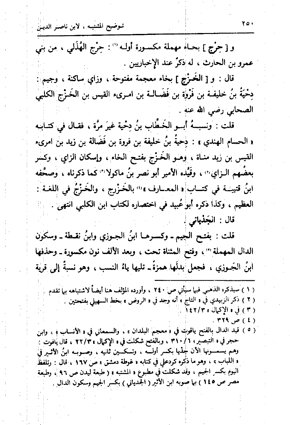 قَالَ: و [الخَزْج] بخاء مُعْجمَة مَفْتُوحَة، وزاي سَاكِنة، وجيم: دحْيَة بن خَليفَة بن فَرْوَة بن فضَالة بن امْرِئ الْقَيْس بن الخزج الْكَلْبِيّ الصَّحَابِيّ رَضِي الله عَنهُ.