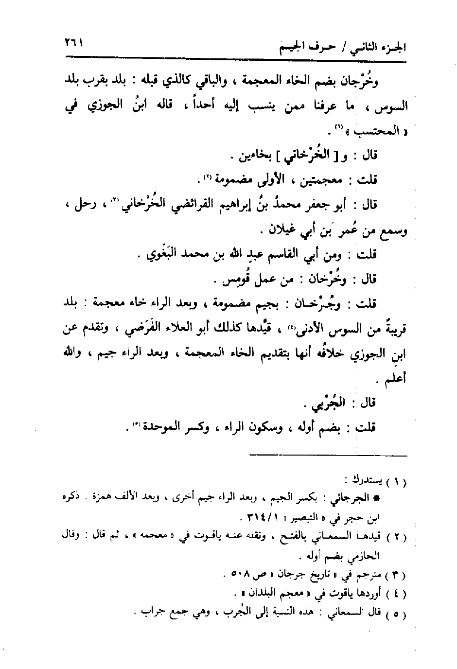 قلت: وجرخان: بجيم مَضْمُومَة، وَبعد الرَّاء خاء مُعْجمَة: بلد قريبَة من السوس الادنى، قيدها كَذَلِك أَبُو الْعَلَاء الفرضي، وَتقدم عَن ابْن الْجَوْزِيّ خِلَافه انها بِتَقْدِيم الْخَاء الْمُعْجَمَة، وَبعد الرَّاء جِيم، وَالله أعلم.