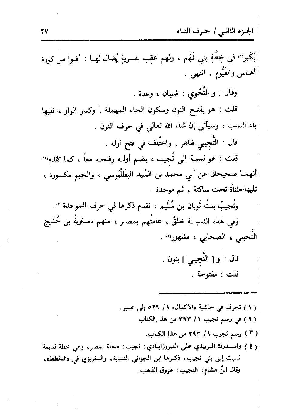 قلت: هُوَ نِسْبَة إِلَى تجيب، بِضَم أَوله وفتحه مَعًا، كَمَا تقدم انهما صَحِيحَانِ عَن أبي مُحَمَّد بن السَّيِّد البطليوسي، وَالْجِيم مَكْسُورَة، تَلِيهَا مثناة تَحت سَاكِنة، ثمَّ مُوَحدَة.