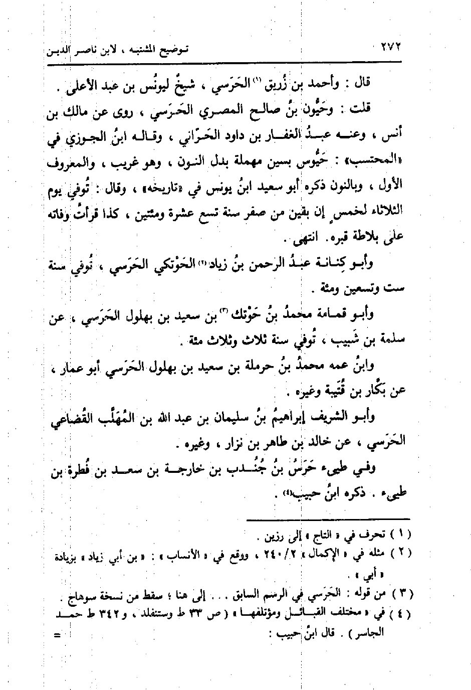 وَابْن عَمه مُحَمَّد بن حَرْمَلَة بن سعيد بن بهْلُول الحرسي أَبُو عمار، عَن بكار بن قُتَيْبَة وَغَيره.