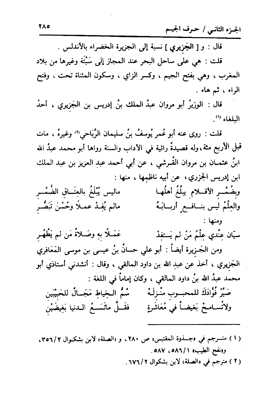 قَالَ: الْوَزير أَبُو مَرْوَان عبد الْملك بن إِدْرِيس بن الجزيري، أحد البلغاء.