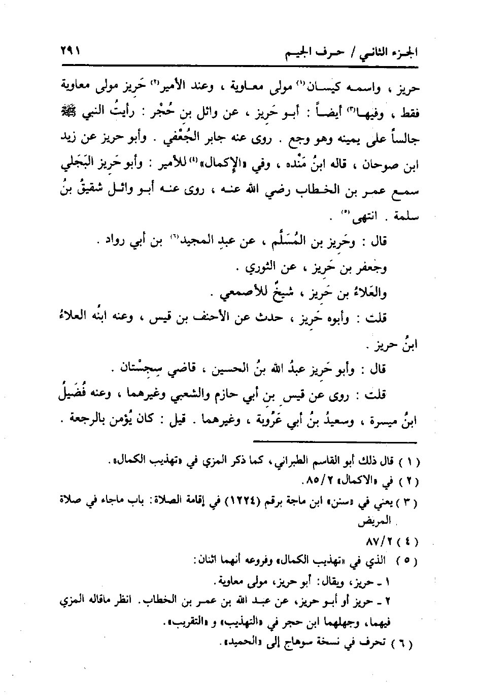 حريز، واسْمه كيسَان مولى مُعَاوِيَة، وَعند الْأَمِير حريز مولى مُعَاوِيَة فَقَط، وفيهَا أَيْضا: أَبُو حريز، عَن وَائِل بن حجر: رَأَيْت النَّبِي صلى الله عَلَيْهِ وَسلم جَالِسا على يَمِينه وَهُوَ وجع. روى عَنهُ جَابر الْجعْفِيّ. وَأَبُو حريز عَن زيد أَبُو صوحان، قَالَه ابْن مَنْدَه، وَفِي " الْإِكْمَال " للأمير: وَأَبُو حريز البَجلِيّ سمع عمر بن الْخطاب رَضِي الله عَنهُ روى عَنهُ أَبُو وَائِل شَقِيق بن سَلمَة. انْتهى.