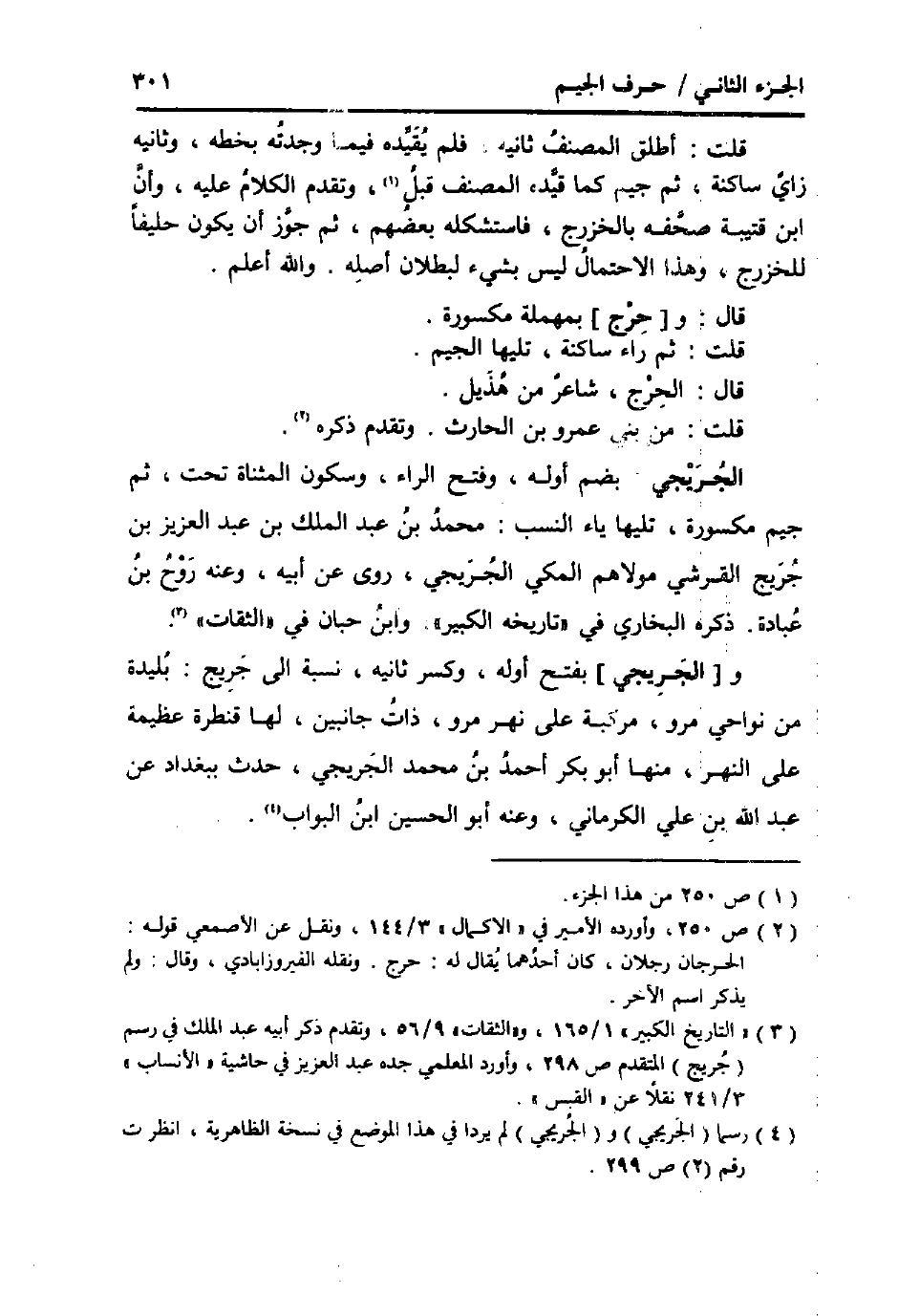 و [الجَرِيجي] بِفَتْح اوله، وَكسر ثَانِيه، نِسْبَة إِلَى جريج: بليدَة من نواحي مرو، مركبة على نهر مرو، ذَات جانبين، لَهَا قنطرة عَظِيمَة على النَّهر، مِنْهَا أَبُو بكر أَحْمد بن مُحَمَّد الجريجي، حدث بِبَغْدَاد عَن عبد الله بن عَليّ الْكرْمَانِي، وَعنهُ أَبُو الْحُسَيْن ابْن البواب.