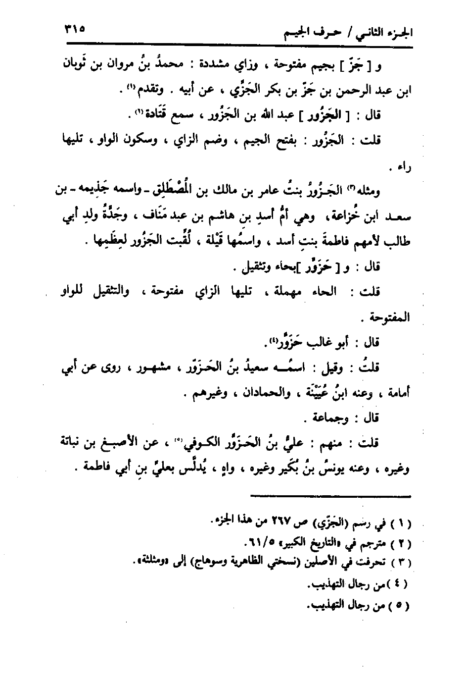 وَمثله الْجَزُور بنت عَامر بن مَالك بن المصطلق - واسْمه جذيمة - بن سعد ابْن خُزَاعَة، وَهِي أم أَسد بن هَاشم بن عبد منَاف، وَجدّة ولد أبي طَالب لأمهم فَاطِمَة بنت اسد، وَاسْمهَا قيلة، لقبت الْجَزُور لعظمها.