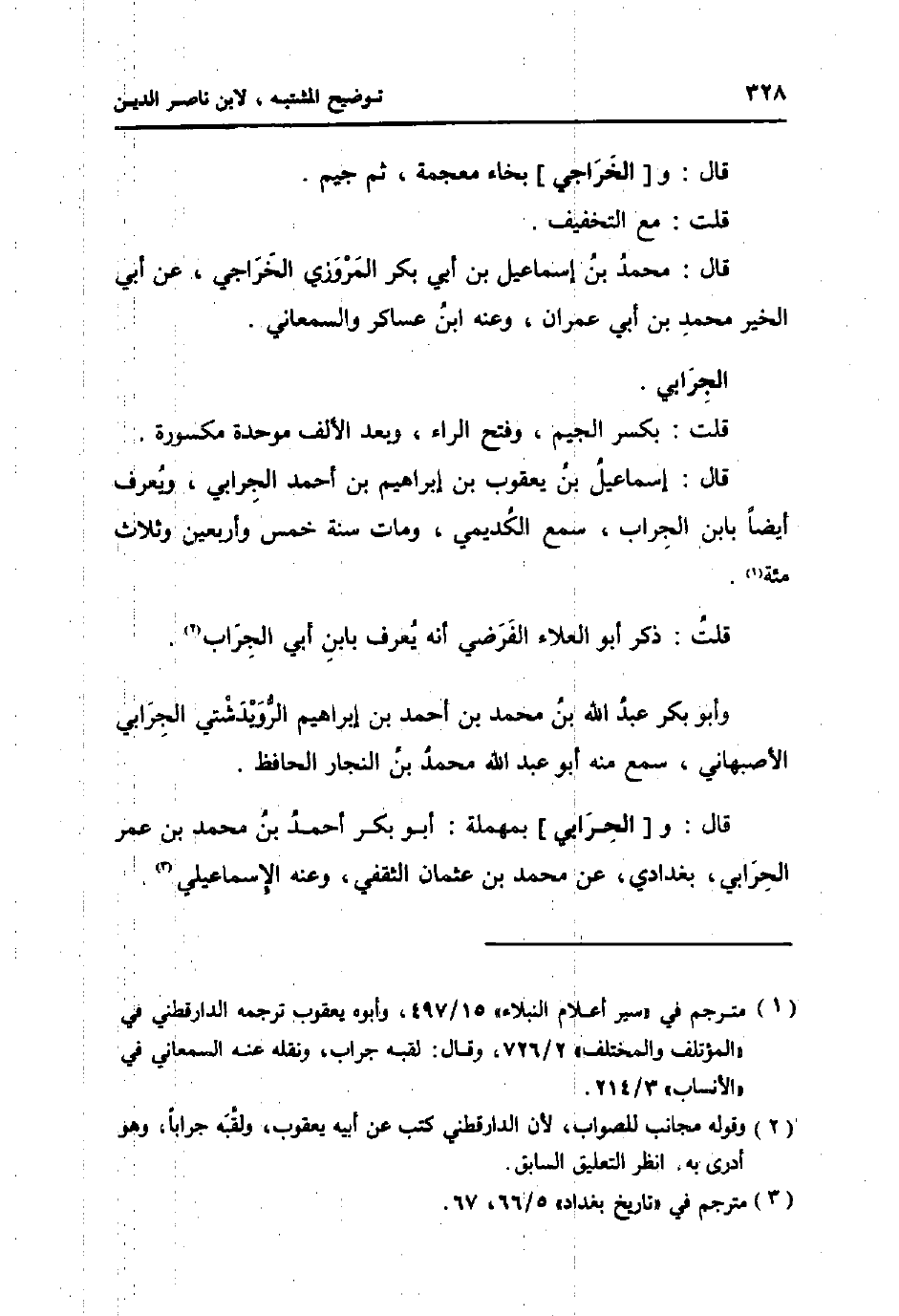قَالَ: و [الحِرَابي] بِمُهْملَة: أَبُو بكر أَحْمد بن مُحَمَّد بن عمر الحرابي، بغدادي، عَن مُحَمَّد بن عُثْمَان الثَّقَفِيّ، وَعنهُ الْإِسْمَاعِيلِيّ.