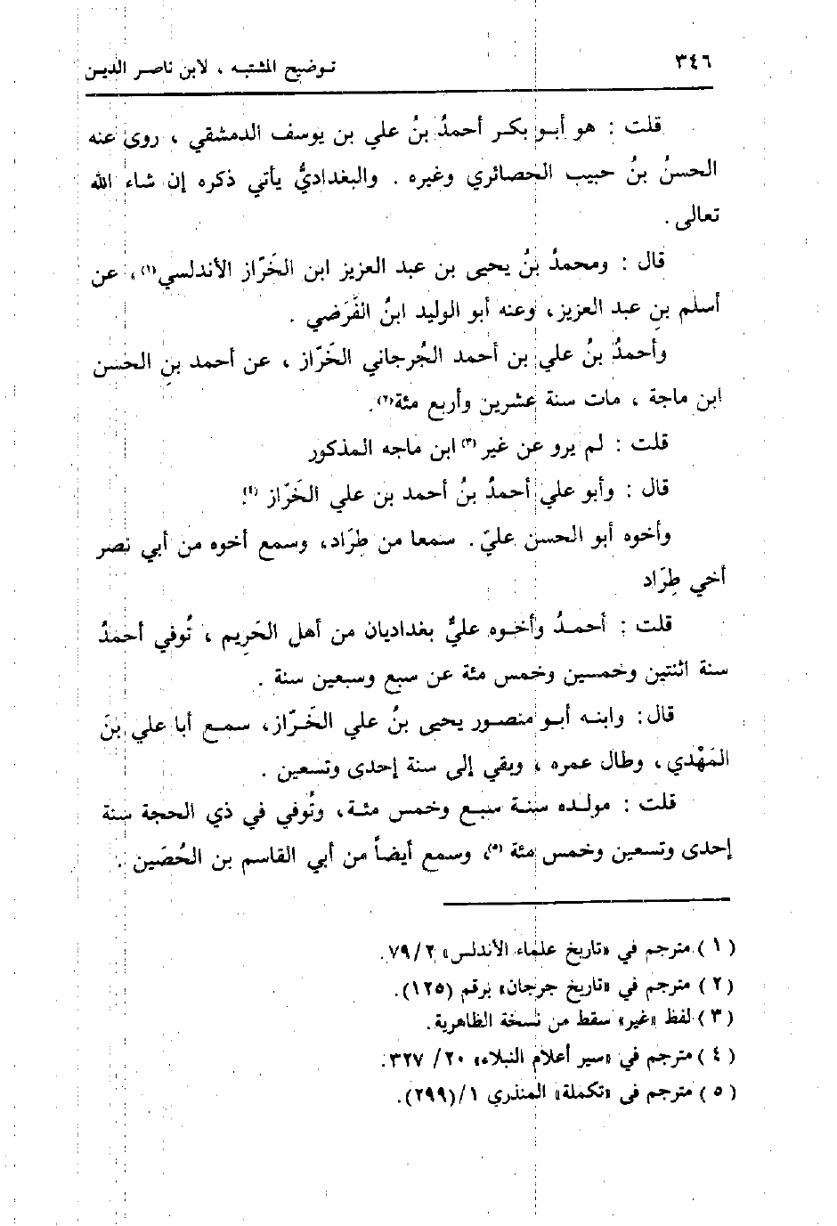وَأحمد بن عَليّ بن أَحْمد الْجِرْجَانِيّ الخراز، عَن أَحْمد بن الْحسن ابْن ماجة، مَاتَ سنة عشْرين وَأَرْبع مئة.
