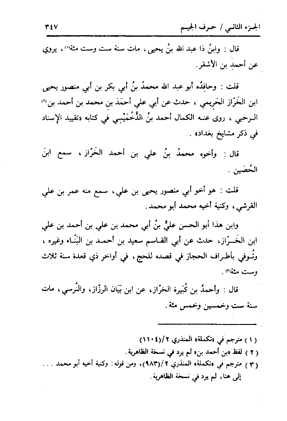 قلت: وحافده أَبُو عبد الله مُحَمَّد بن أبي بكر بن أبي مَنْصُور يحيى ابْن الخراز الحريمي، حدث عَن أبي عَليّ أَحْمد بن مُحَمَّد بن أَحْمد بن الرَّحبِي، روى عَنهُ الْكَمَال أَحْمد بن الدخميسي فِي كِتَابه " تَقْيِيد الْإِسْنَاد فِي ذكر مَشَايِخ بَغْدَاد ".