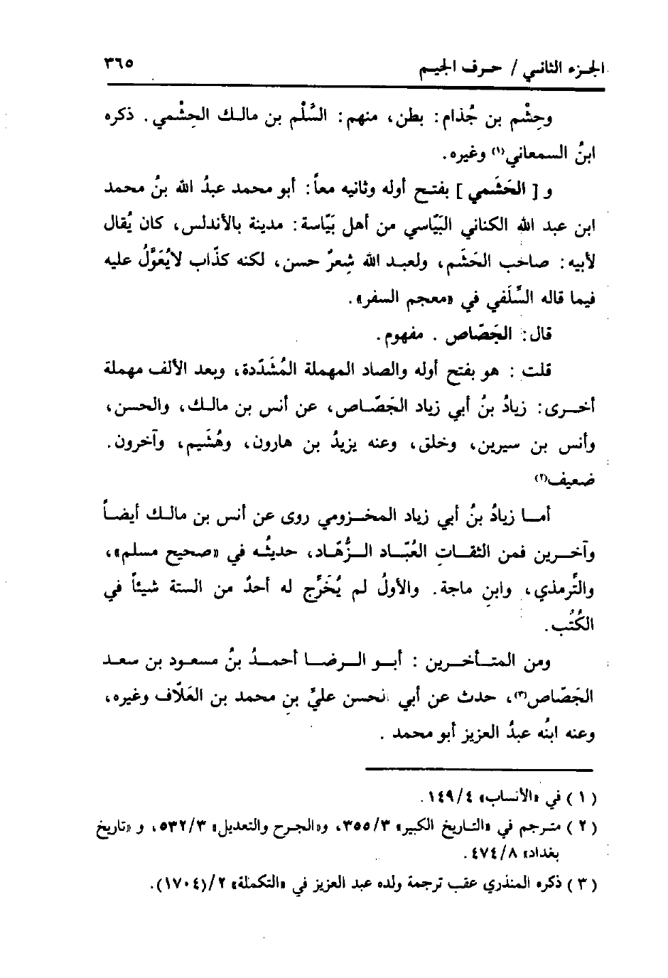 قلت: هُوَ بِفَتْح أَوله وَالصَّاد الْمُهْملَة الْمُشَدّدَة، وَبعد الْألف مُهْملَة أُخْرَى: زِيَاد بن أبي زِيَاد الْجَصَّاص، عَن أنس بن مَالك، وَالْحسن، وَأنس بن سِيرِين، وَخلق وَعنهُ يزِيد بن هَارُون، وهشيم، وَآخَرُونَ. ضَعِيف.