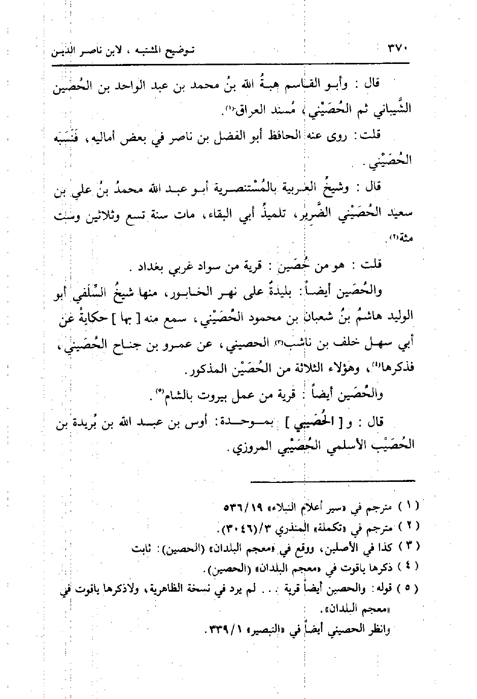 قلت: هُوَ من حُصَيْن: قَرْيَة من سَواد غربي بَغْدَاد.